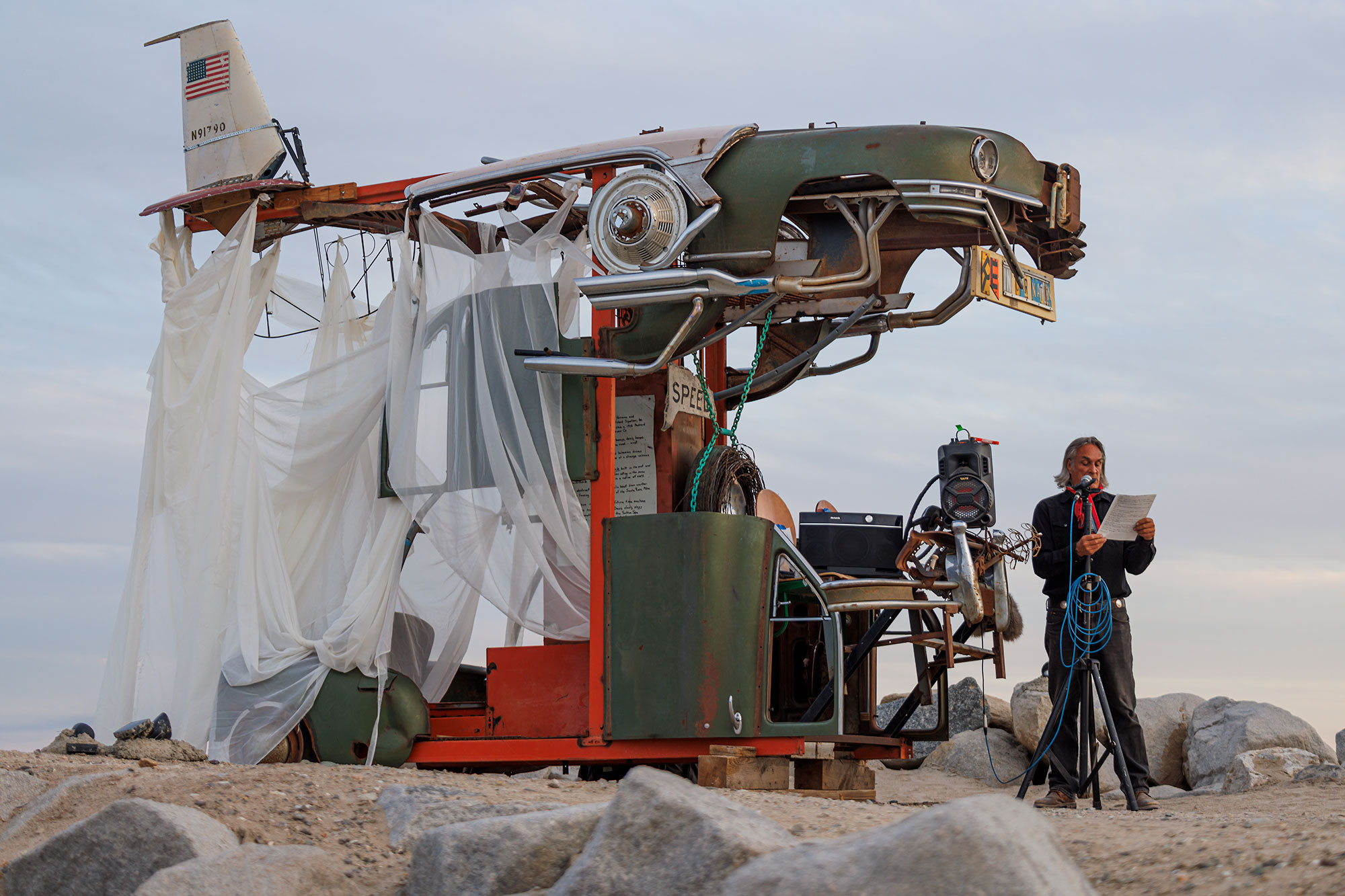 Michael “Danger Ranger” Mikel, one of the founders of Burning Man, has been coming to the Bombay Beach Biennale since it started. “This is where the edge is,” he told me, saying that it embodies much of the raw energy and creative free spirit that animated Burning Man in the early days.