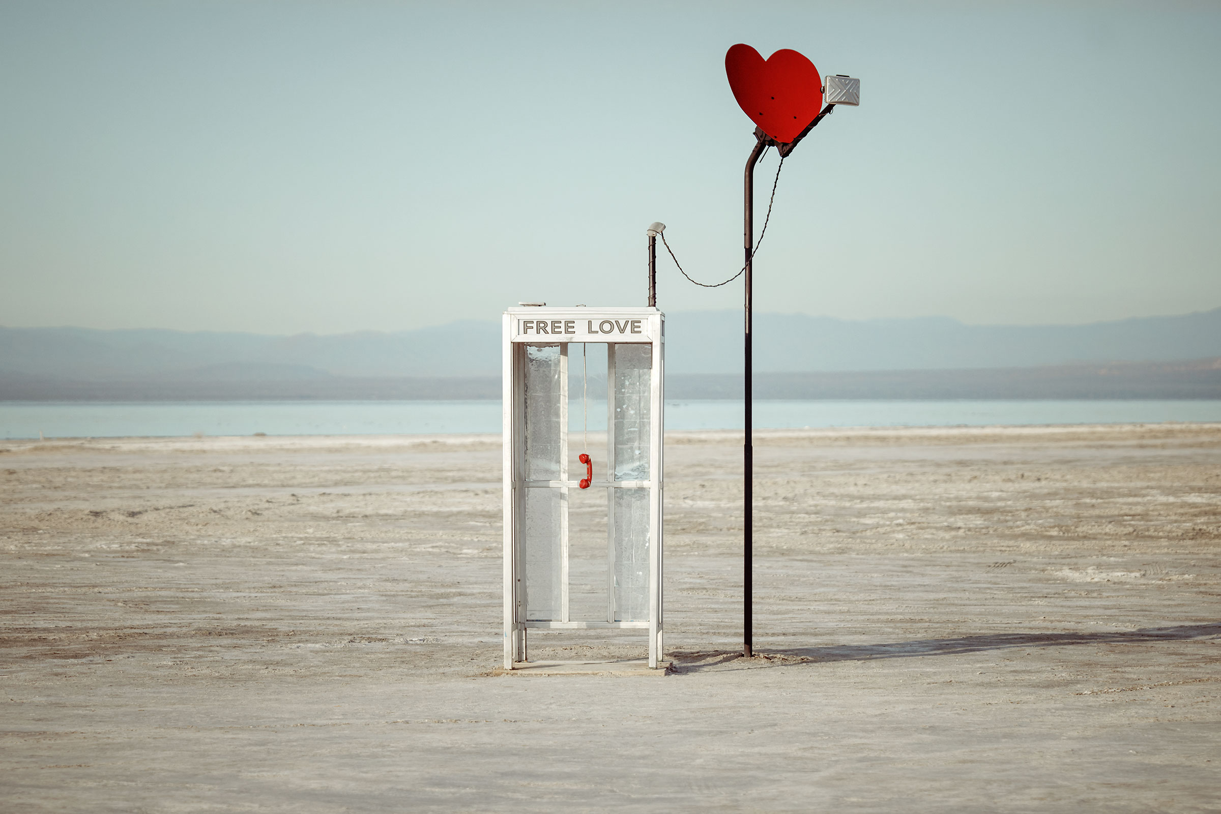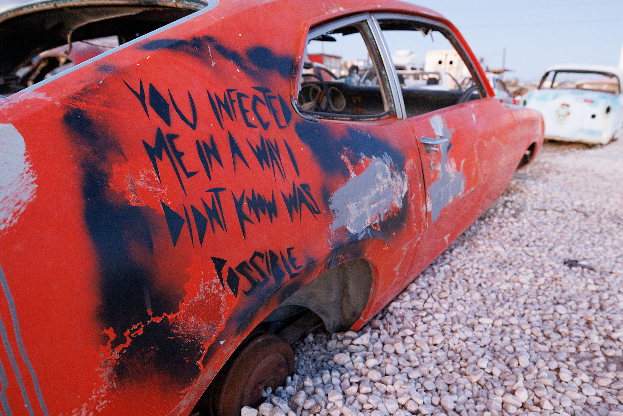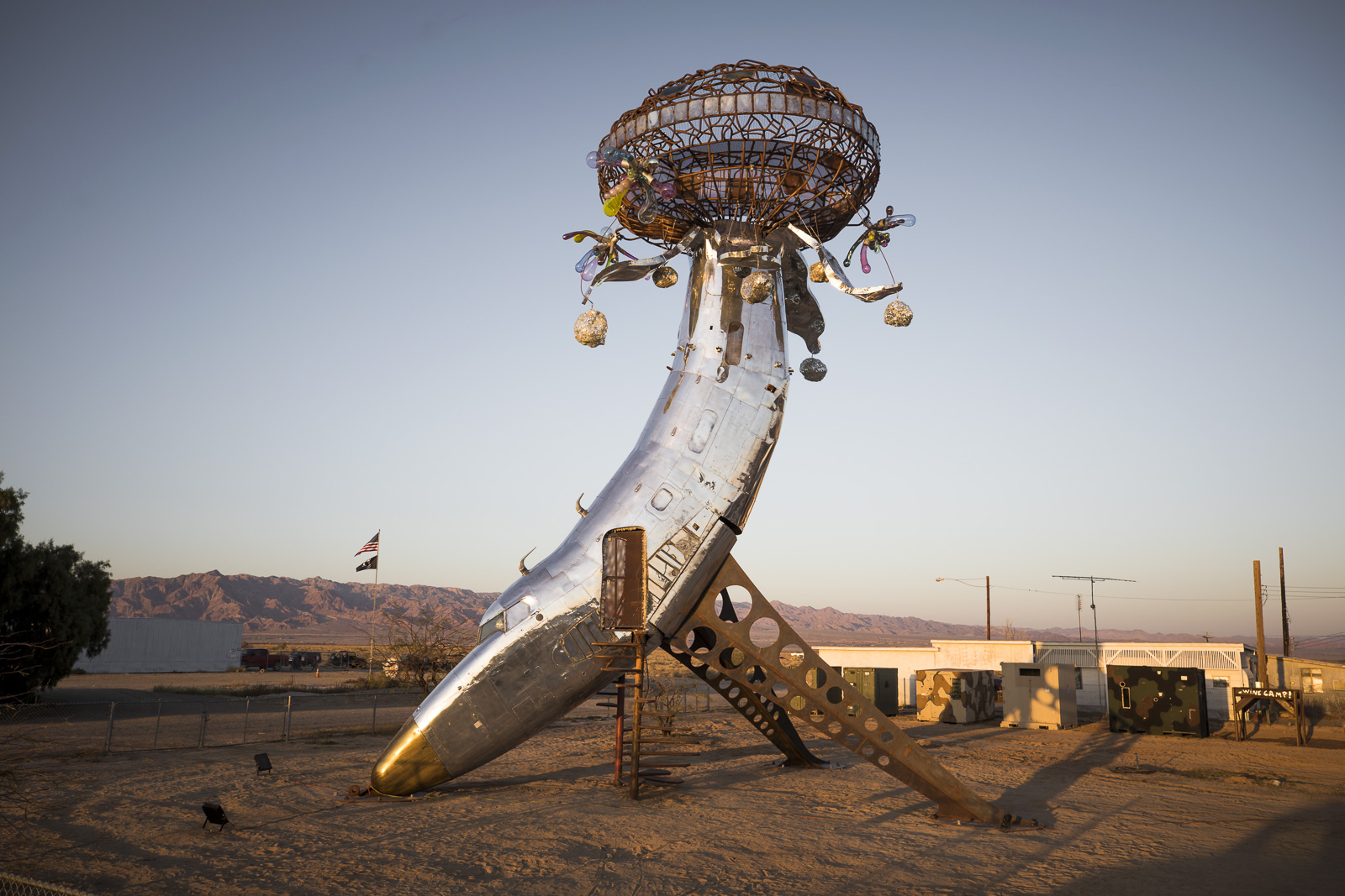 The deserts of southern California are home to many renegade artist colonies. In nearby Slab City, the late folk artist Leonard Knight created a now-famous installation called Salvation Mountain—a monument to divine love and forgiveness—using strawbales and thousands of gallons of bright colored paint. Up the road from Salvation Mountain is East Jesus, a mecca of junk art made at the site of an old dump.