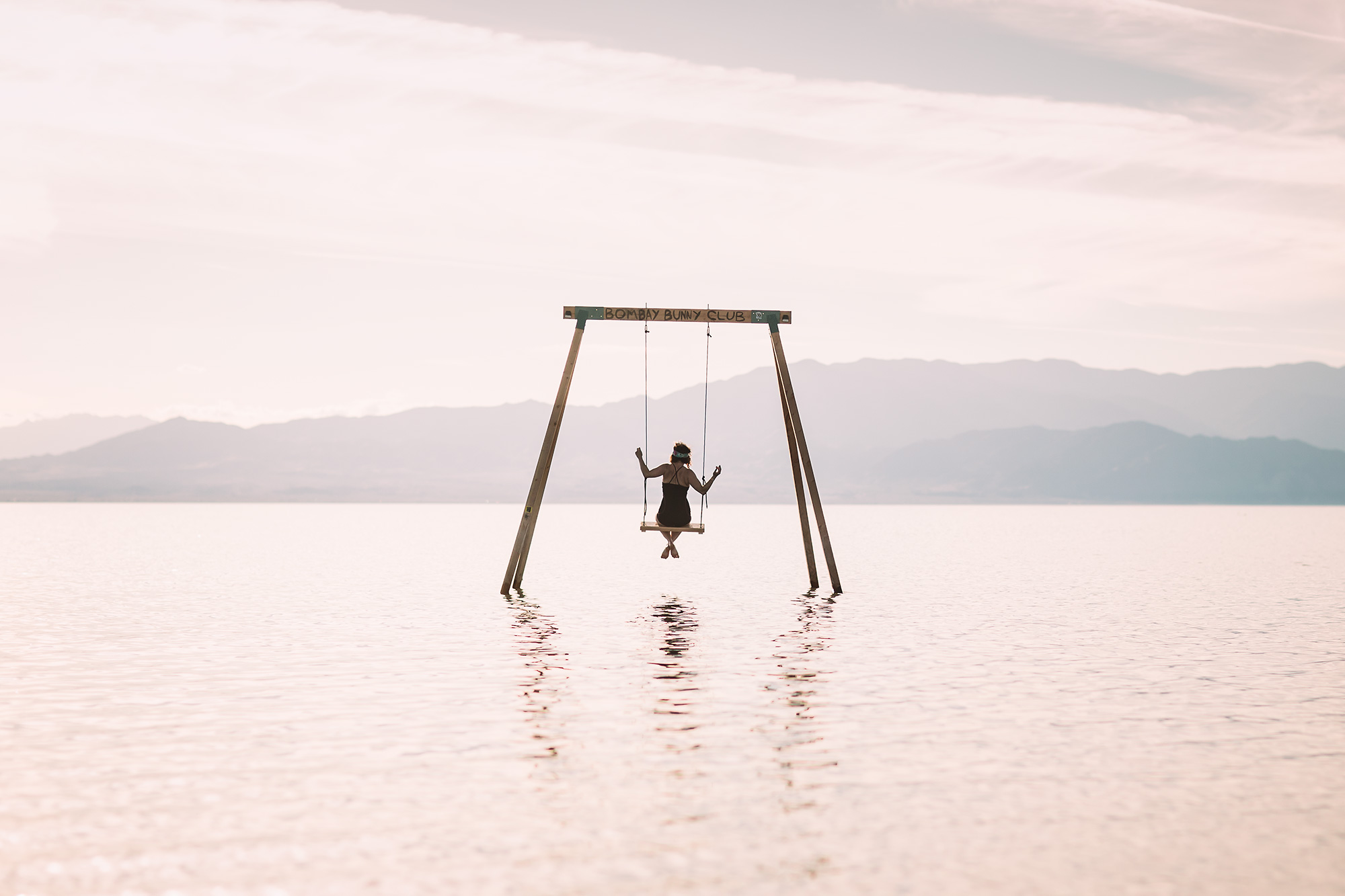 In 2019, Chris “Ssippi” Wessman and Damon James Duke built a swing set and installed it about 50 feet out from the water’s edge. They’ve had to move it at regular intervals to keep up with the Salton Sea’s receding shoreline.
