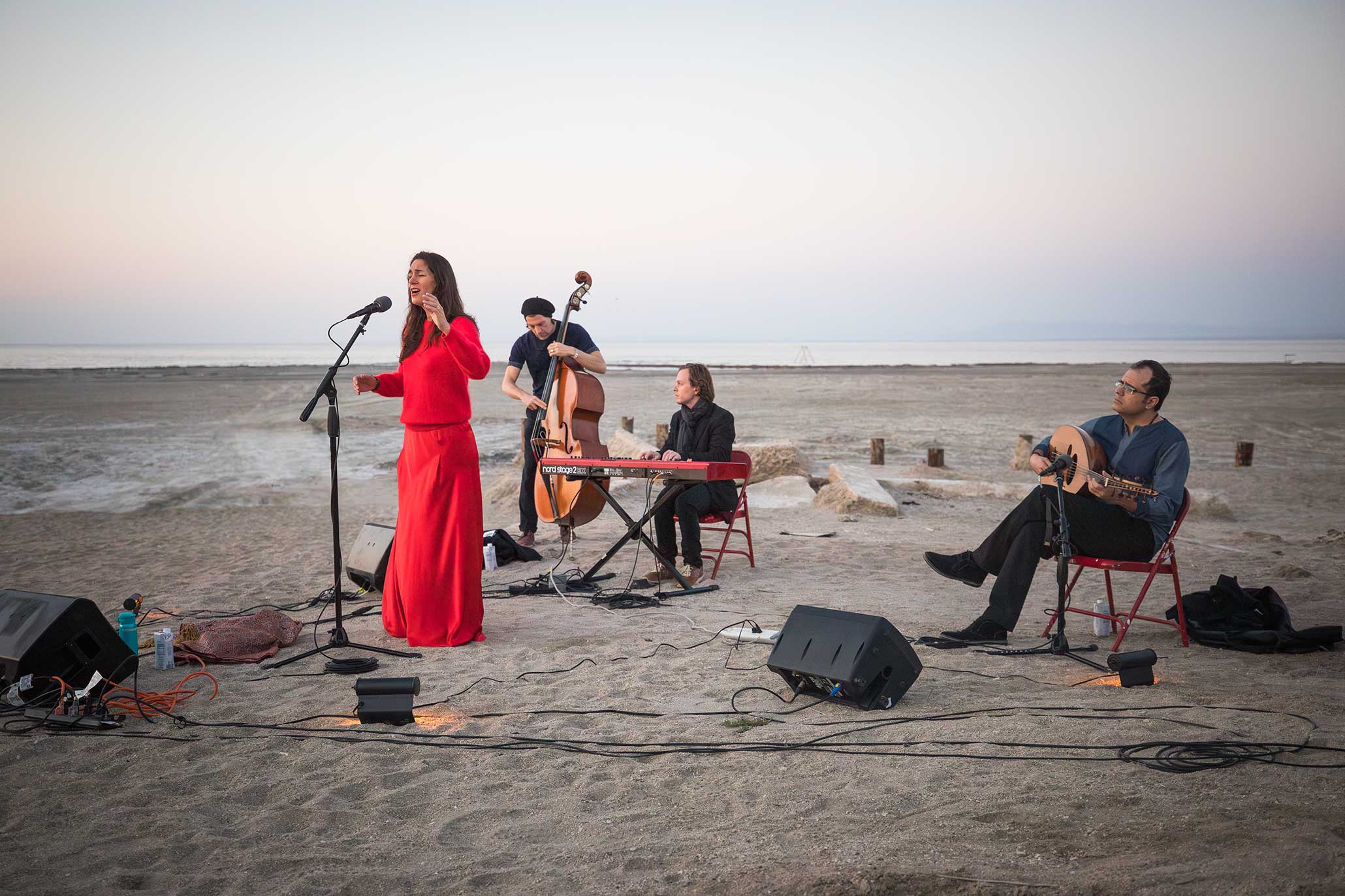 The renowned French mezzo-soprano Ariana Vafadari gave a spellbinding sunrise performance on the beach on the final day of the 2019 Biennale.