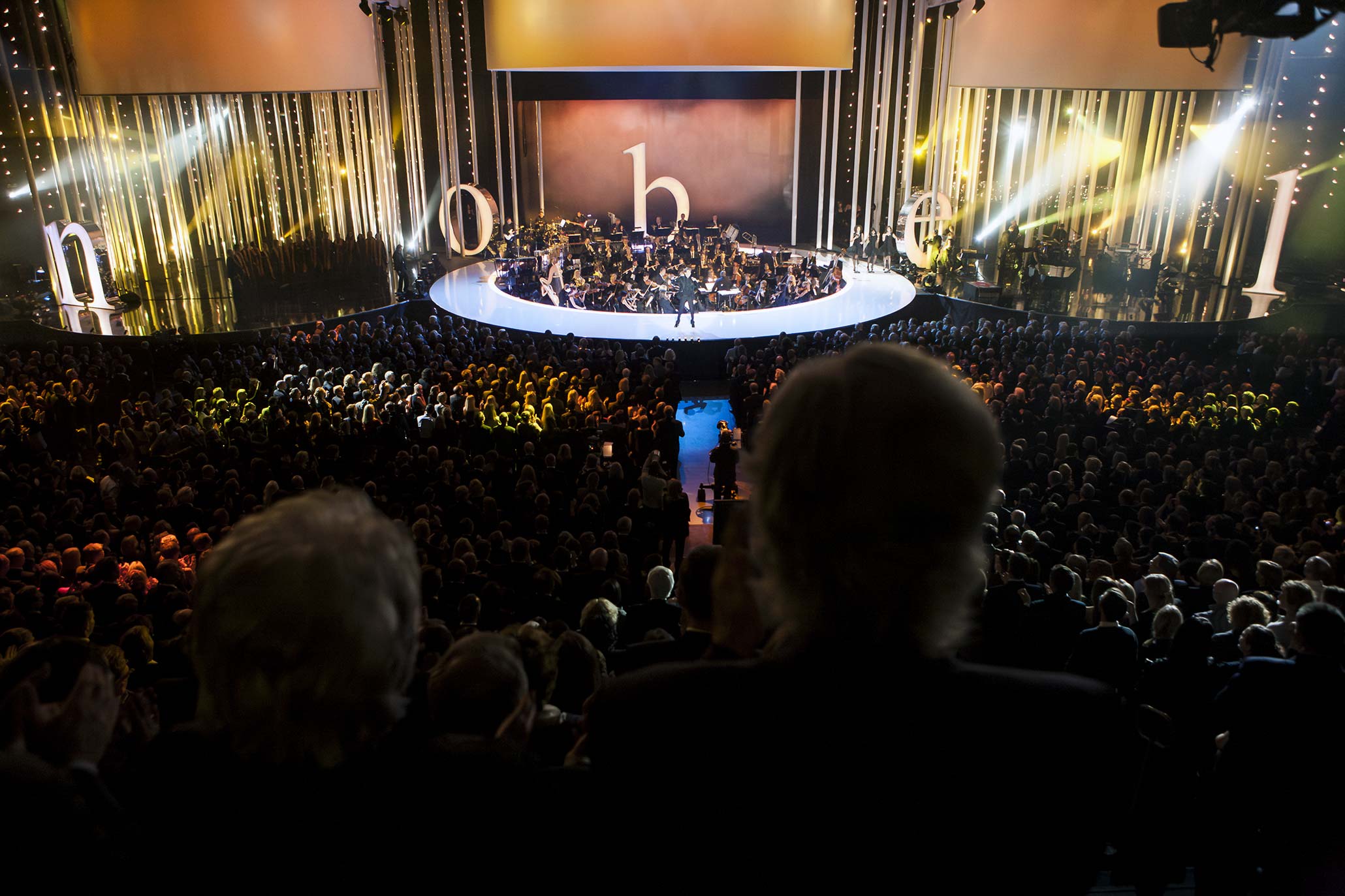 Broadcast to some 100 countries and more than 300 million households worldwide, the Nobel Peace Prize Concert is the most popular and highly visible of the Nobel Peace Prize events held in Oslo. The 2010 concert honored jailed Chinese dissident Liu Xiaobo. It was held at Oslo’s Spektrum Arena before an audience of more than 3,000 people. Hosted by actors Denzel Washington and Anne Hathaway, the show featured an all-star lineup of international performers, including Herbie Hancock, India Arie, Florence + the Machine, Colbie Caillat, Robyn, Jamiroquai, A.R. Rahman, Sivert Høyem, as well as Barry Manilow, seen here performing his 1970s pop hit “Copacabana.”