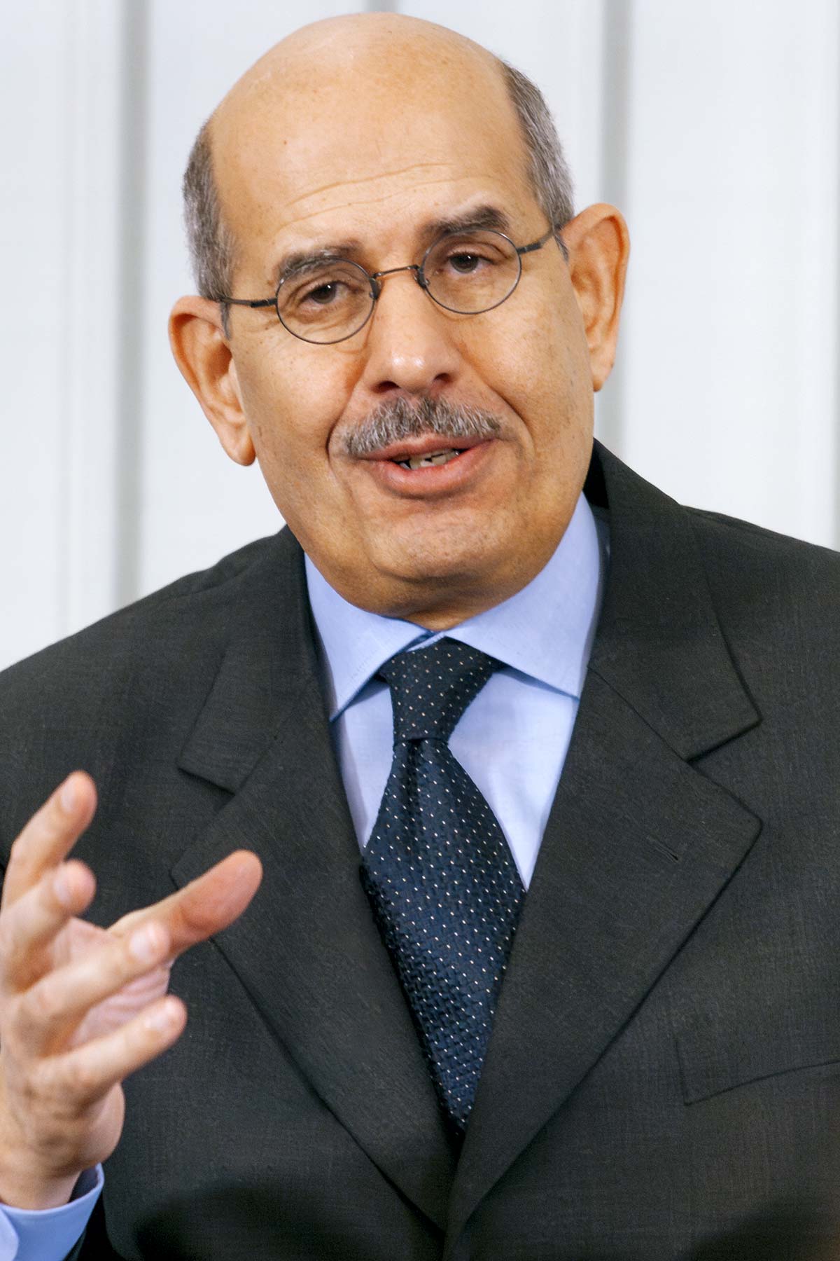 The 2005 prize was awarded to the International Atomic Energy Agency and its director general, Mohamed ElBaradei, for their efforts to control the spread of nuclear weapons. Here ElBaradei talks with journalists about the threat of nuclear weapons spreading to international terrorist groups and states like Iran and North Korea.
