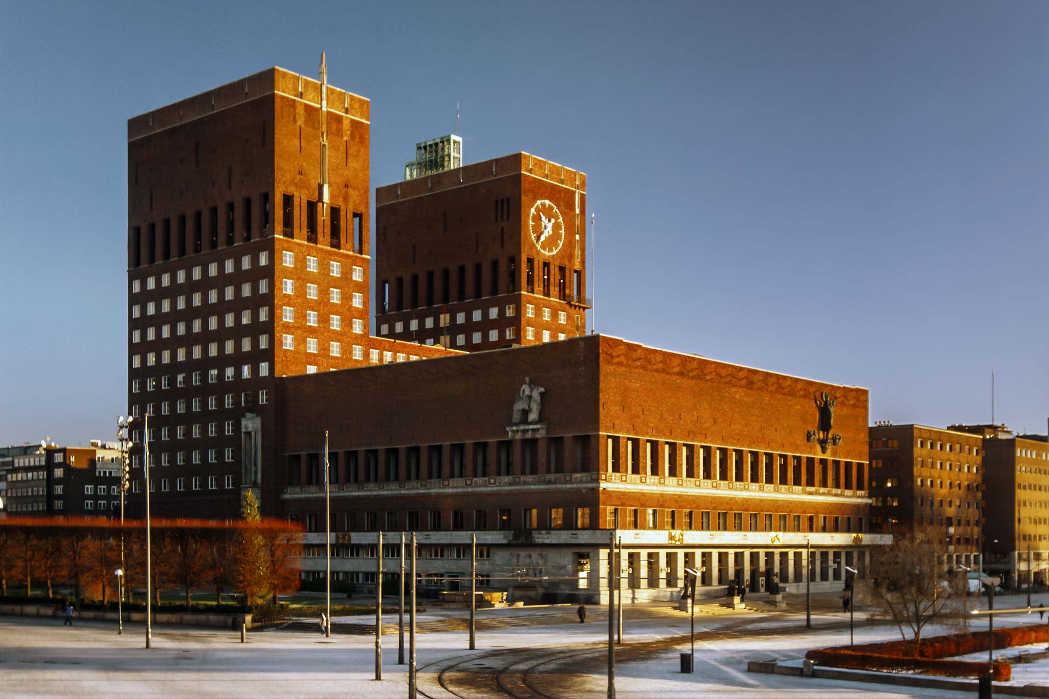 The Nobel Peace Prize award ceremony is held at Oslo’s City Hall. It’s one of the Norwegians’ most beloved structures, housing some of the most impressive art in Oslo, including an 85-foot wall painting by Henrik Sørensen, a mural by Edvard Munch, and a host of tapestries, frescoes and sculptures. Completed in 1950, the building was designed in the National Romantic style, which was popular in Scandinavia in the late 19th and early 20th centuries, featuring red brick construction, decorative elements, and a distinctive clock tower.