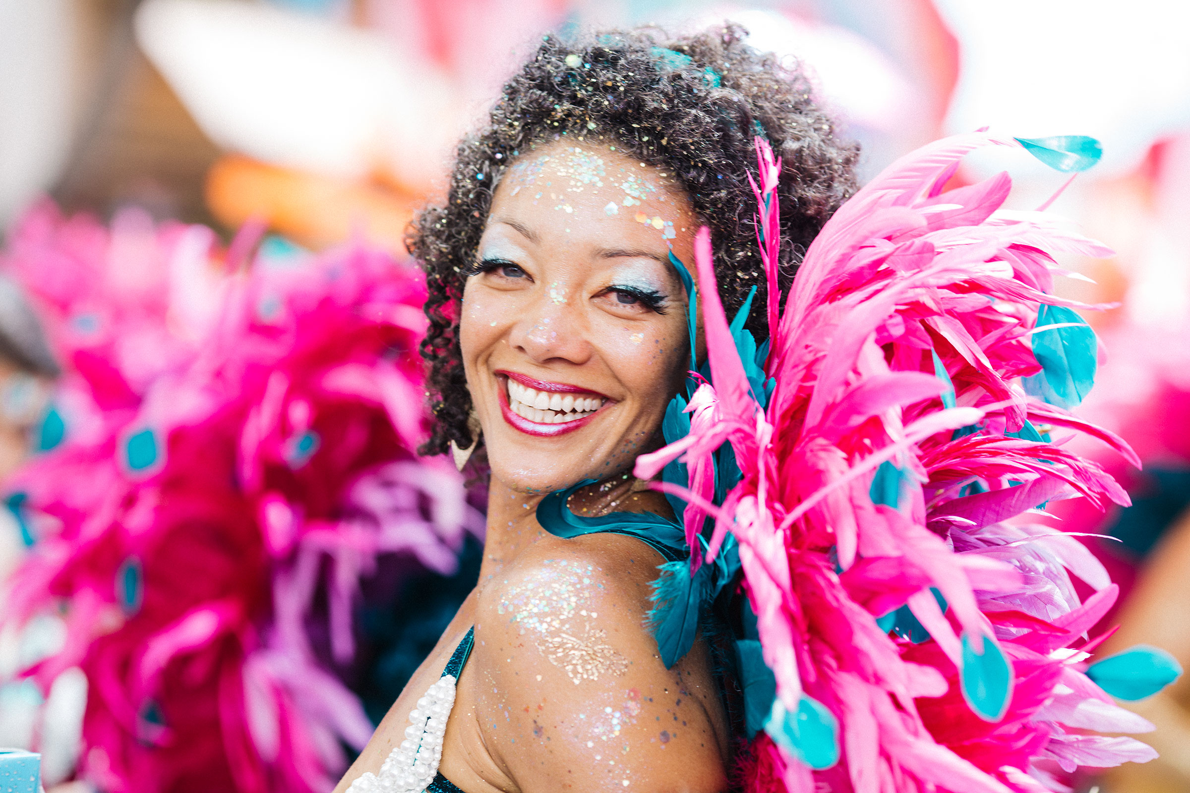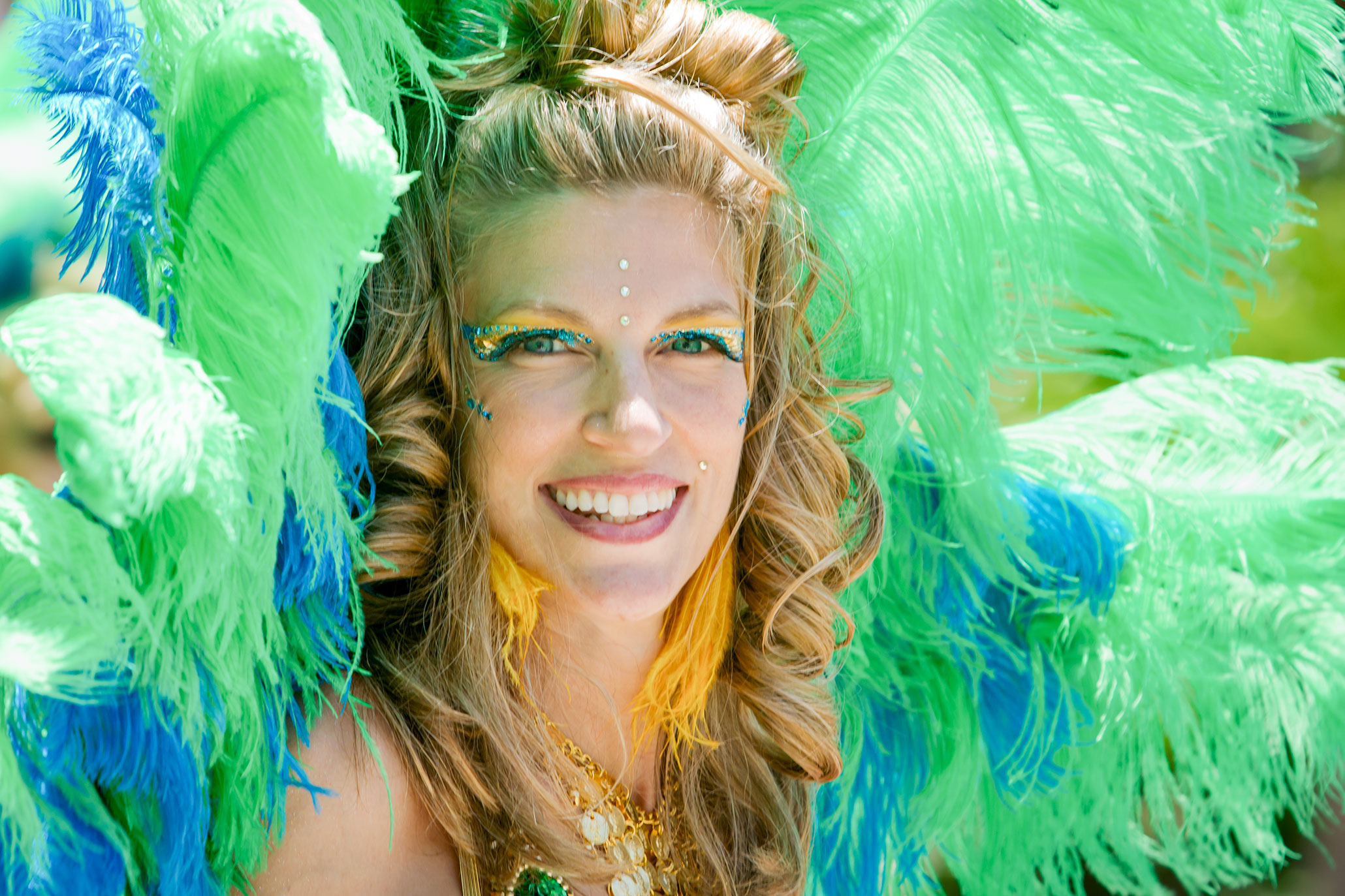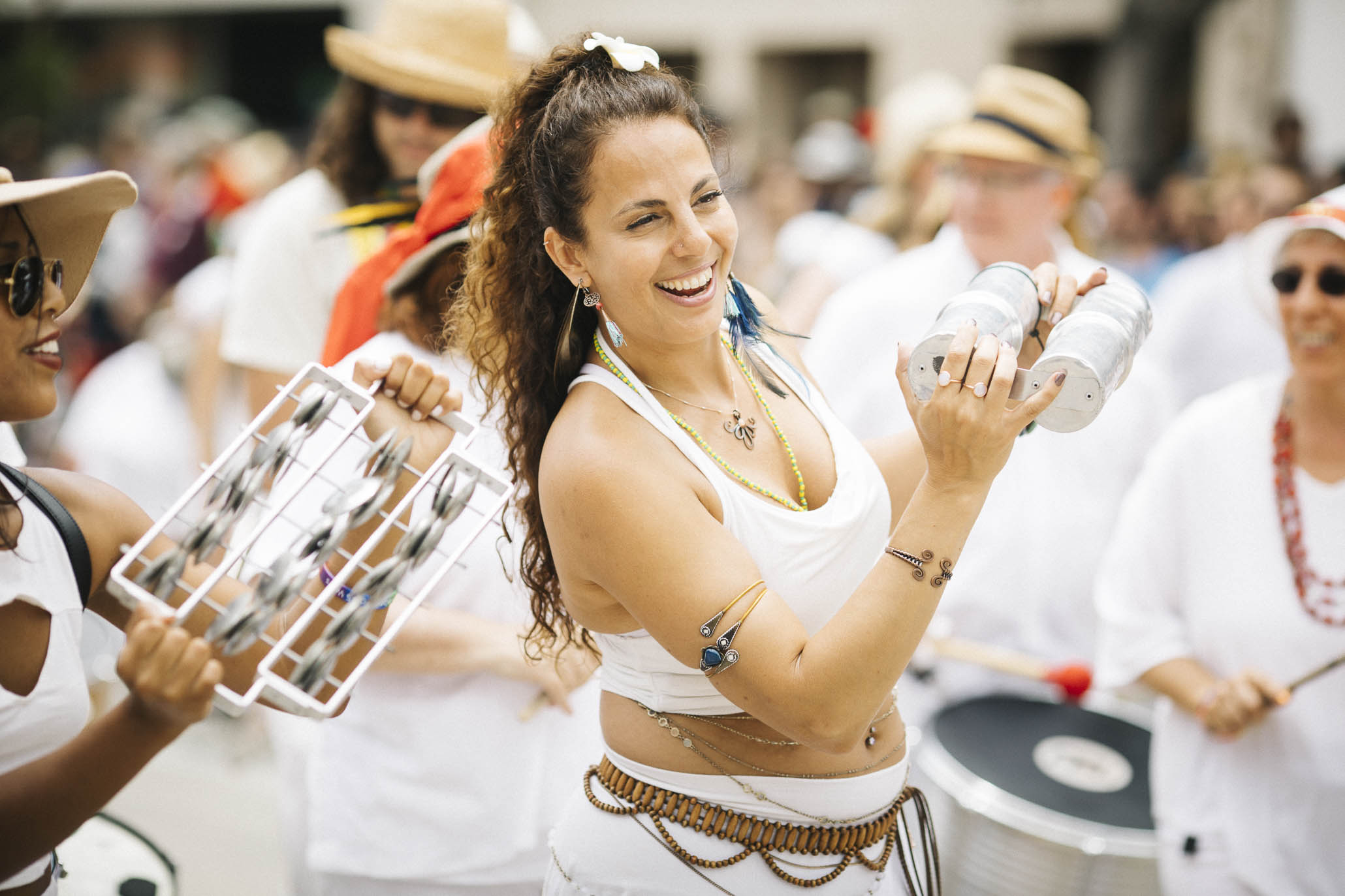 The centerpiece is a carnivalesque parade with big floats, Brazilian drummers, giant puppets, circus performers, kids in costume, dance ensembles and fabulous passistas wearing feathers and sequins (and not much else).